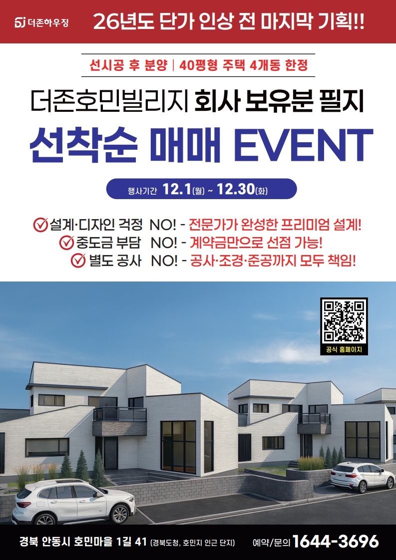 더존호민빌리지 26년도 단가 인상 전 회사보유분 필지 선착순 매매 이벤트를 합니다.